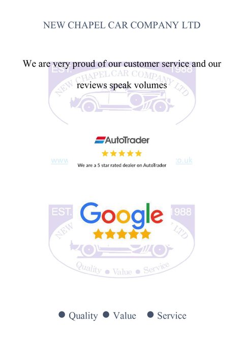 New Chapel Car Company Est 1988. Recipients of multiple Auto Trader Highly Rated awards for Customer Service and 5 Star rated Customer reviews. Check out our reviews on both Auto Trader and Google and see what sets us apart from our competition.